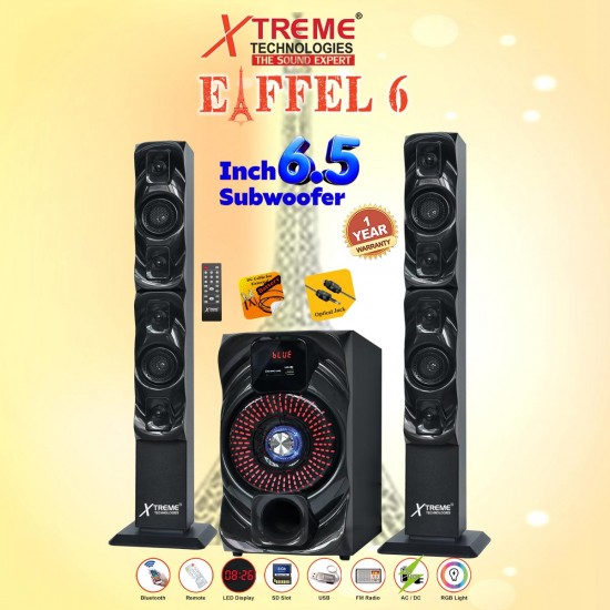 Eiffel 6 – 2.1 Multimedia Speaker with Optical Jack and Long Speaker + 6.5″ Woofer